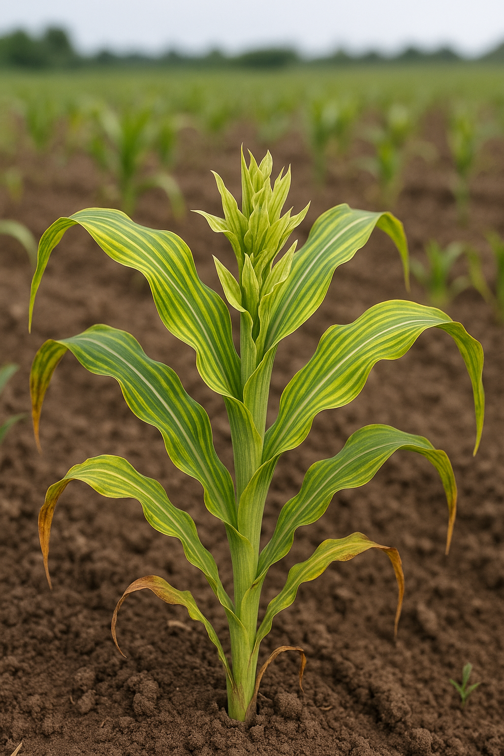 मक्का में पत्तियों पर सफेद/पीली धारियाँ